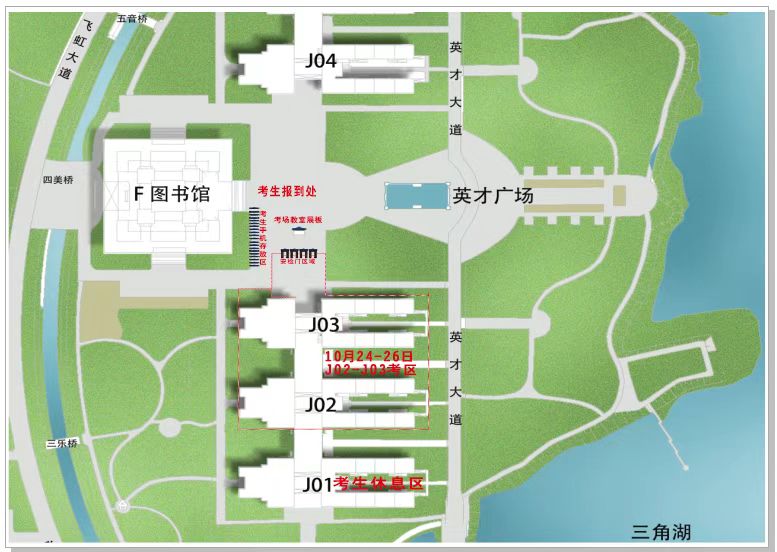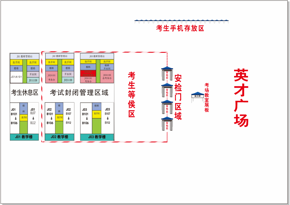 2.学校将开放J01教学楼B区1楼教室,供考生午休。