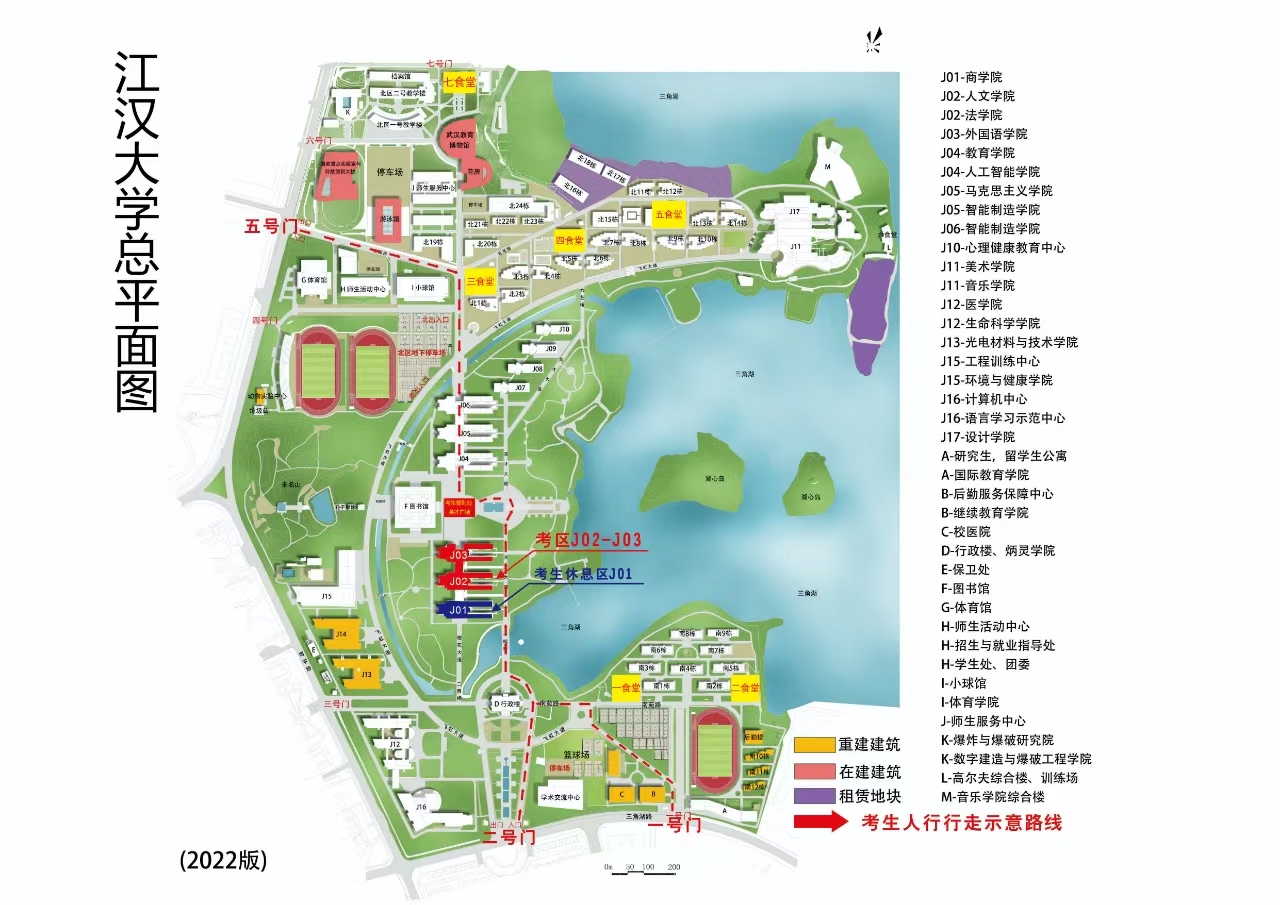 1.考生统一凭有效居民身份证和考试通知单,由江汉大学1号门、2号门或5号门进入校园。