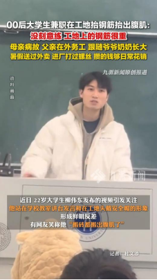 寒假,他进厂做“螺丝工”,每天重复同一动作上千次,指尖磨出厚茧,生疼也不停手;暑假,他又扎进工地,顶着近40 ℃的高温背砖块,汗水浸透衣衫,手心磨出水泡,仍笑着拒绝休息。